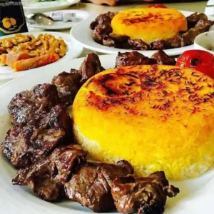 مخلوط گوشت گوسفندی و گوساله 240گرم + برنج طارم محلی 320گرم + دورچین + کره
